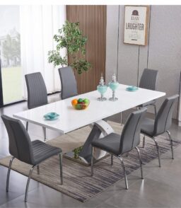 Extending Dining Set High Gloss White, 1600W + (400) x 800D x 760H, White & Grey High Gloss Frame with Stainless Steel Coated Base