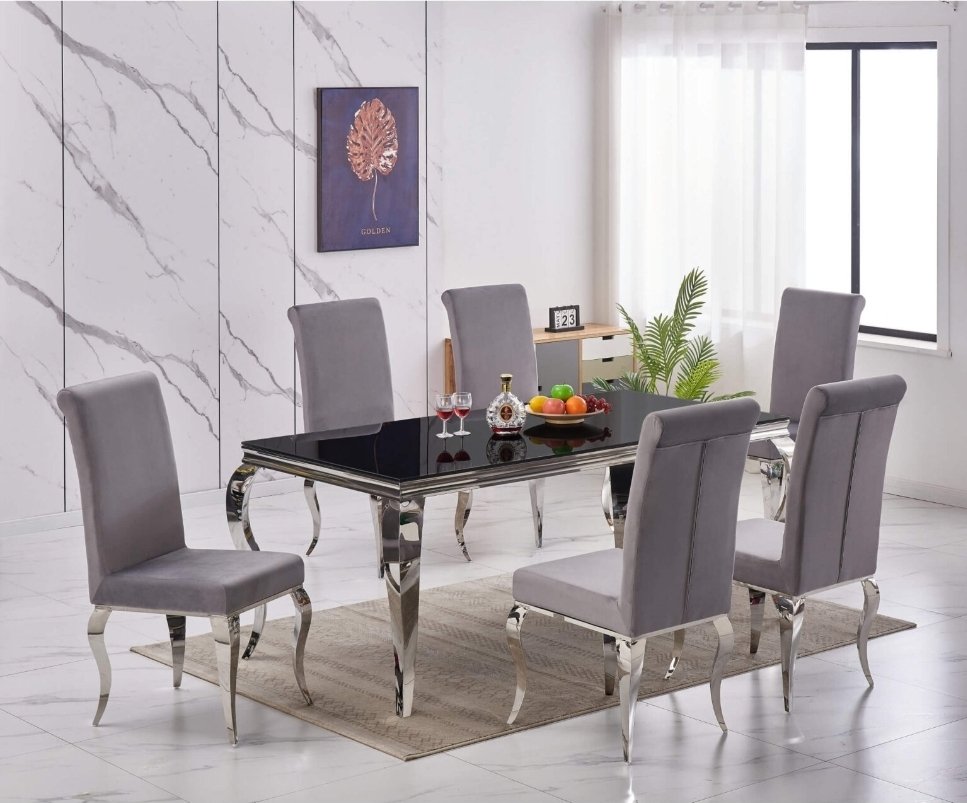 Atlanta Dining Table Black Glass with Silver Legs