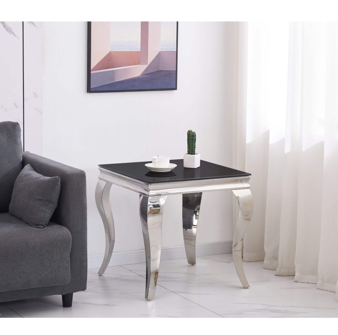 Atlanta Lamp Table Black Glass & Silver Legs