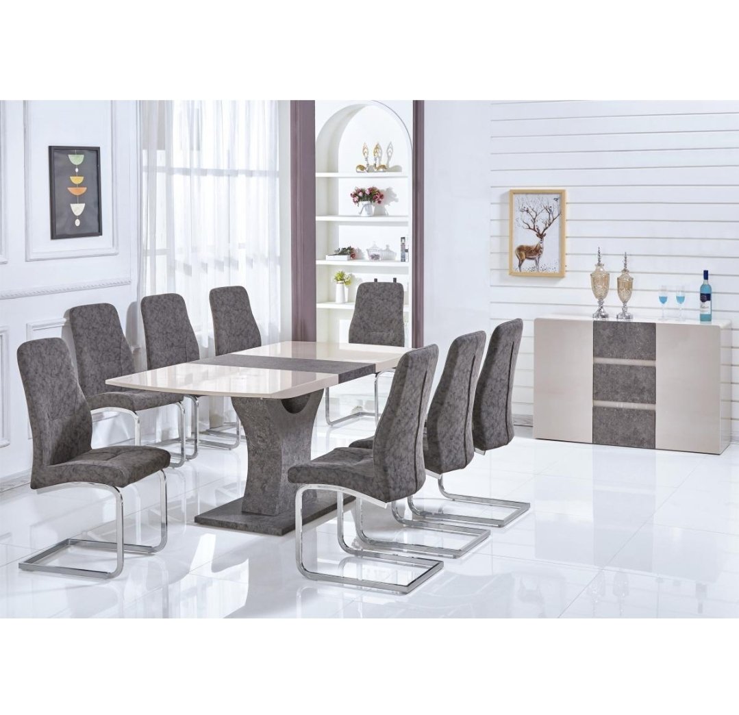 Belarus High Gloss Ext Dining Table Cream & Stone
