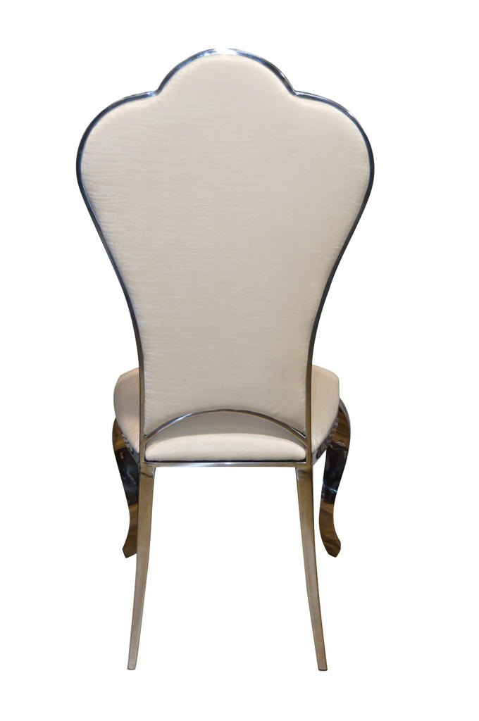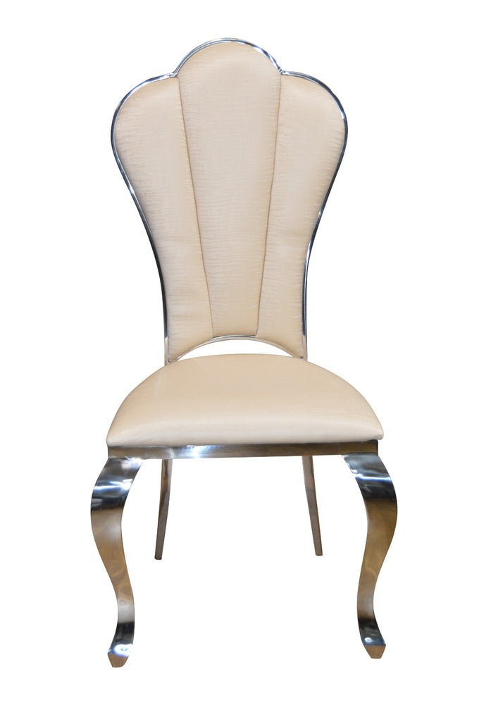 Elevate your dining space with this stunning Luxe Shell-Back Dining Chair, designed to bring elegance, comfort, and a touch of glamour to any room. Featuring a beautifully sculpted shell-inspired backrest and a sleek metallic frame.