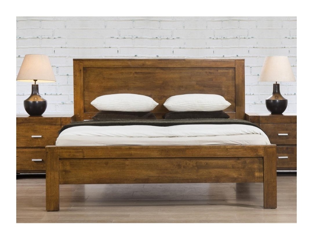 California Double Bed Solid Rubberwood Rustic Oak