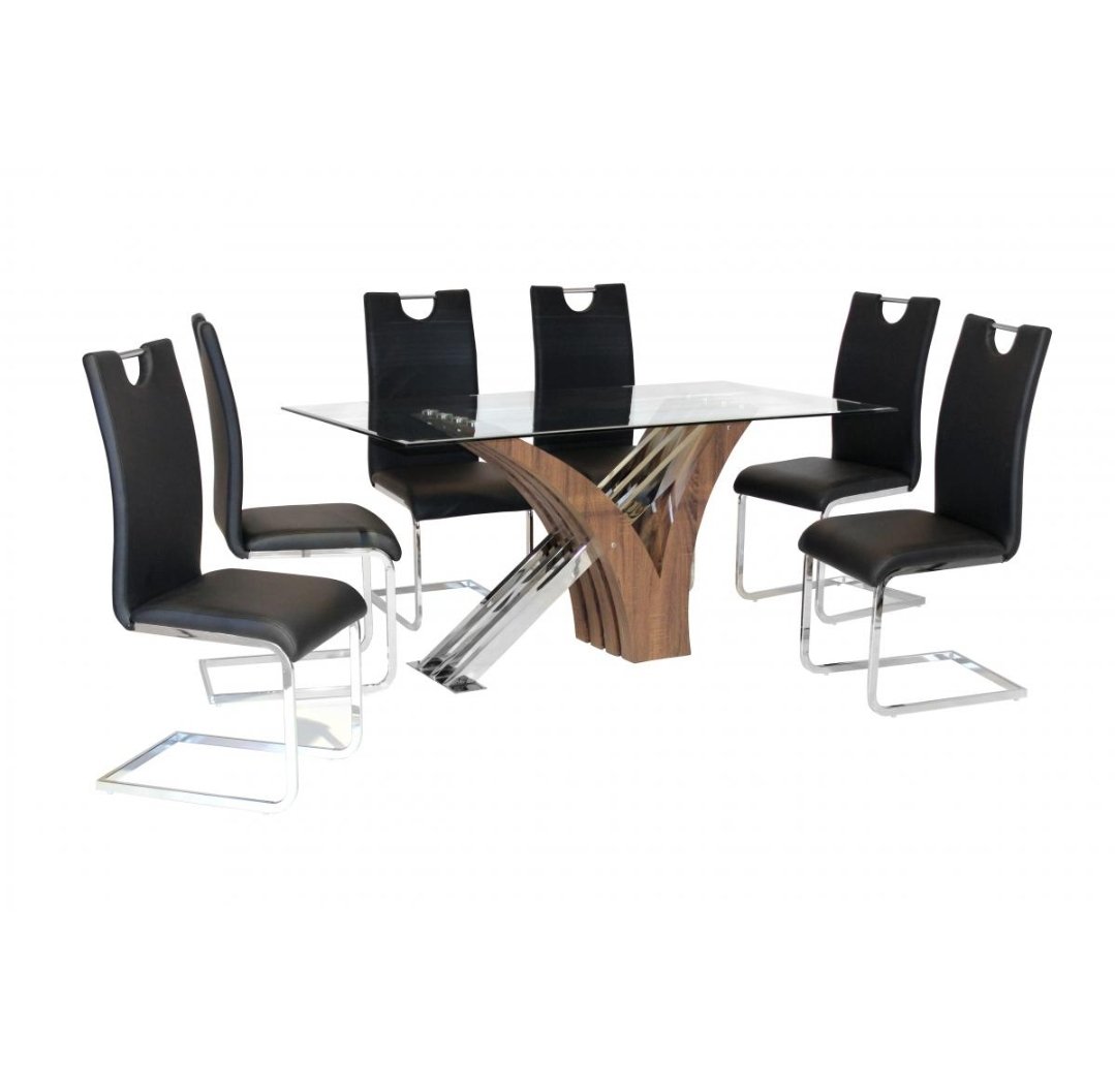 Caspian Glass Dining Table Walnut Colour