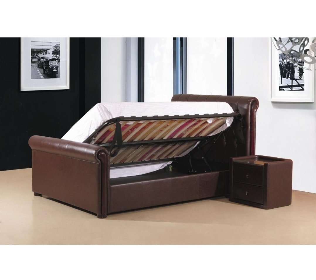 Caxton PU Storage Bed.Double, Kingsize.Black, Brown..Opens RHS only.With Board Base