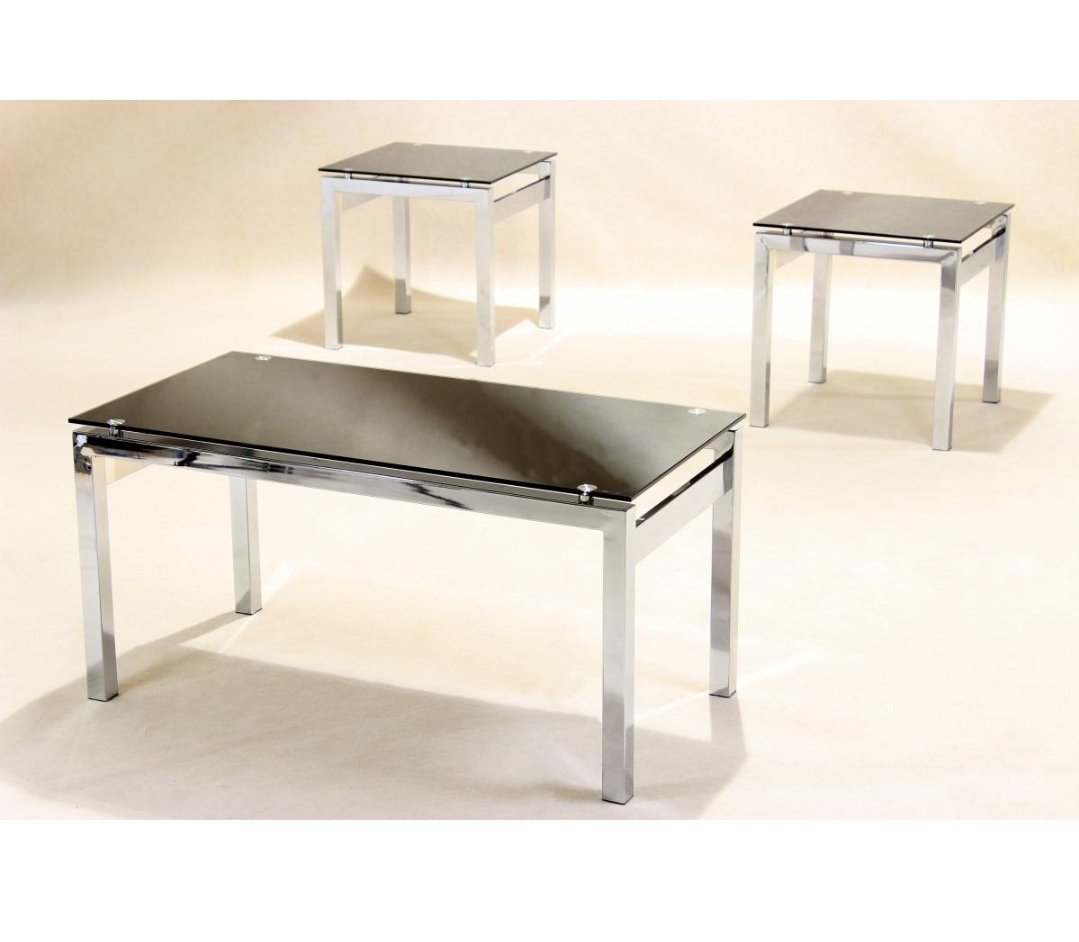 Eton Occasional Set Chrome/Black Glass JOA262