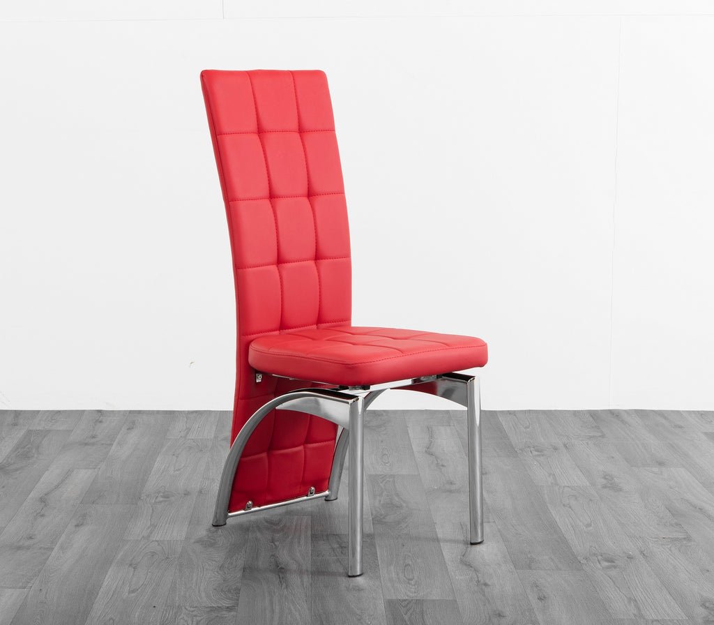 Modern Style PVC covered, chrome frame, comfortable thick pad foam seat. Strong Aluminium stylish frame legs and high back panel base. These chairs come into four different colors: Black/ Brown/ Red/ White.