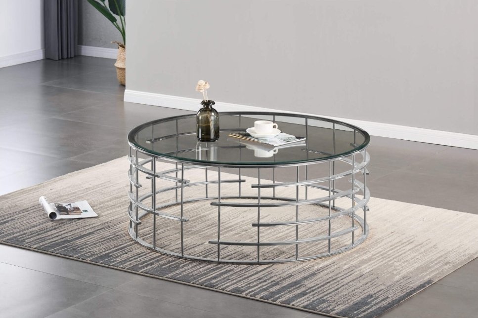 Missouri Round Coffee Table Clear Glass & Silver Frame