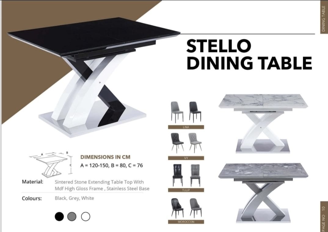 Stello Sintered Ceramaic Stone Or Glass Extending Dining Table